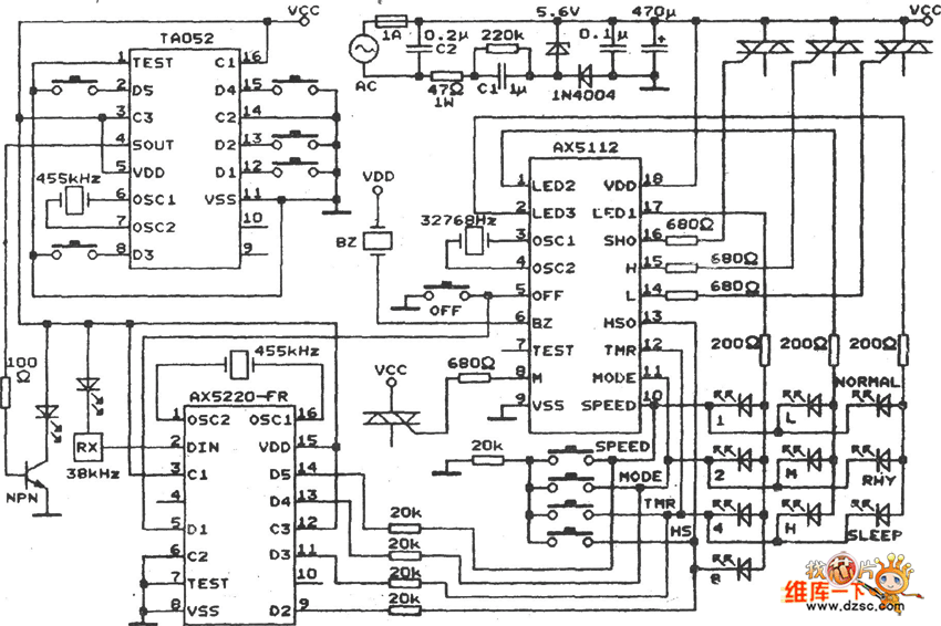 AX5112 Fan multi-function remote control circuit is shown in the diagram: