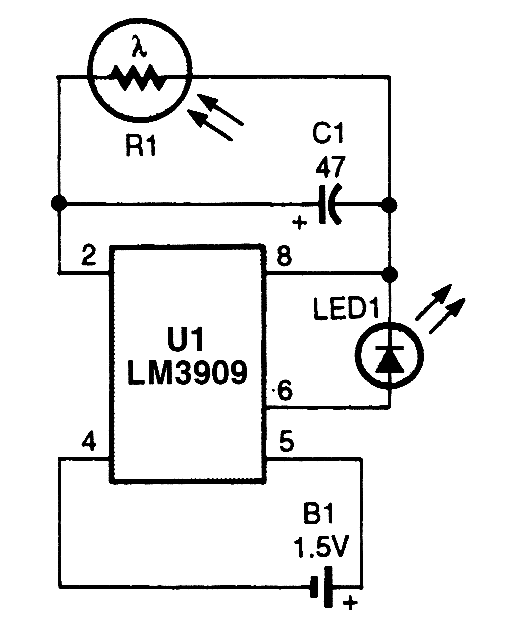 The device will simulate the presence of a burglar alarm in automobiles or homes. Mount RI where daylight can fall on it. During darkness, LED1 flashes, making potential intruders think an alarm system is installed.