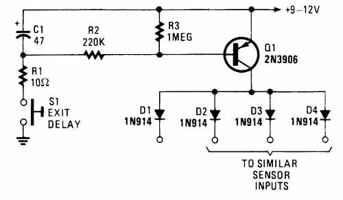 http://www.seekic.com/circuit_diagram/Control_Circuit/Alarm_Control/EXIT_DELAY_FOR_BURGLAR_ALARMS.html