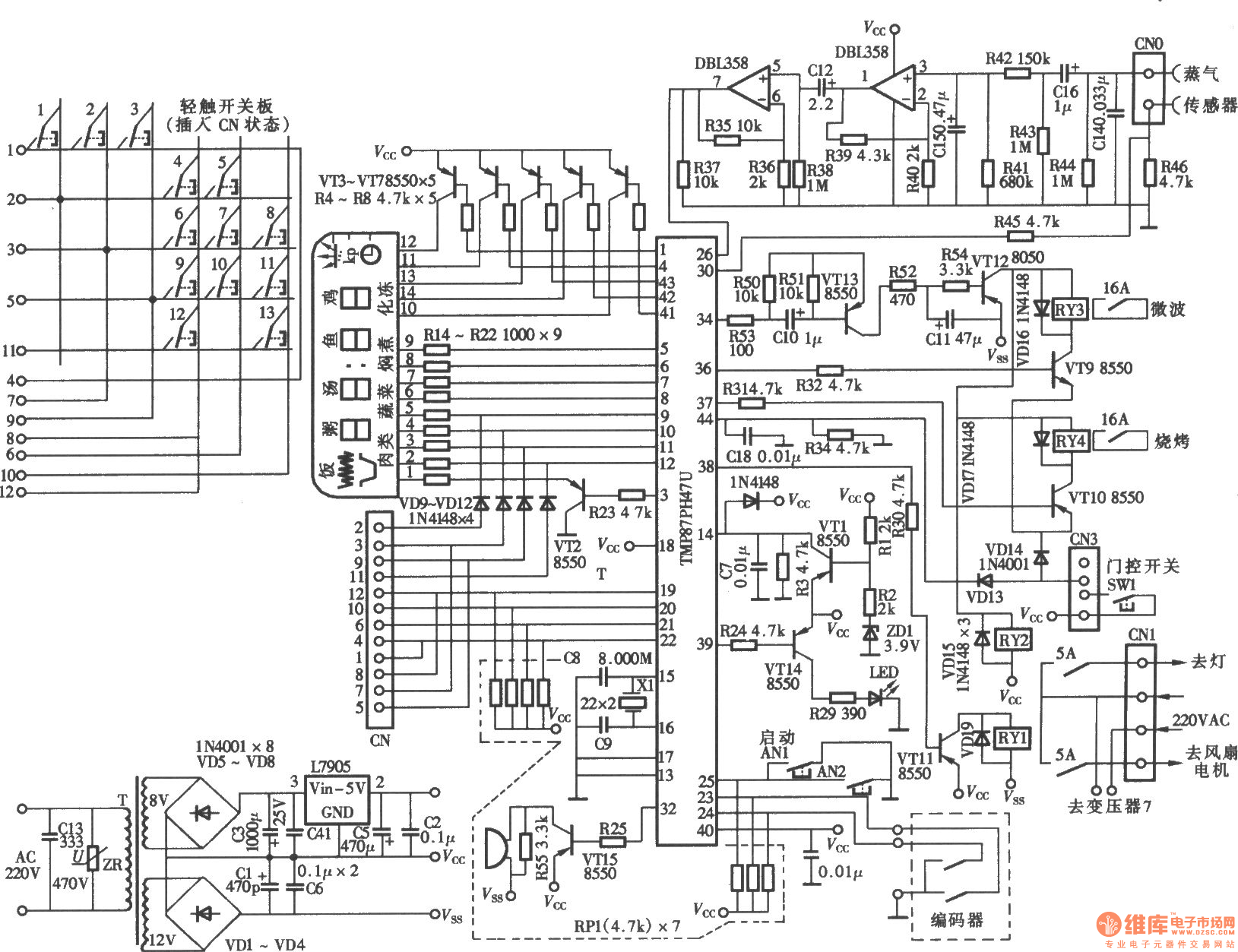 http://www.seekic.com/circuit_diagram/Control_Circuit/Amproluck_WD850ES_PC_microwave_computer_control_panel.html