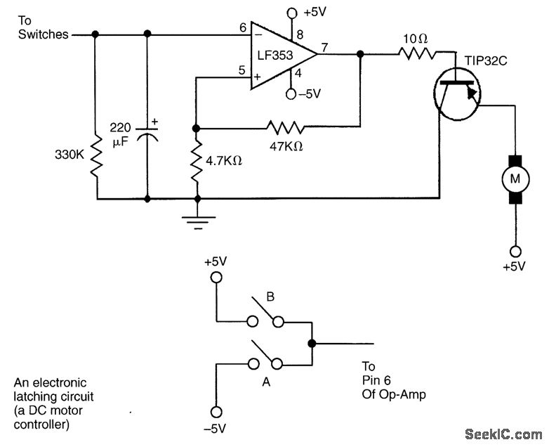 http://www.seekic.com/circuit_diagram/Control_Circuit/ELECTRONIC_LATCH_DC_MOTOR_CONTROLLER_CIRCUIT.html