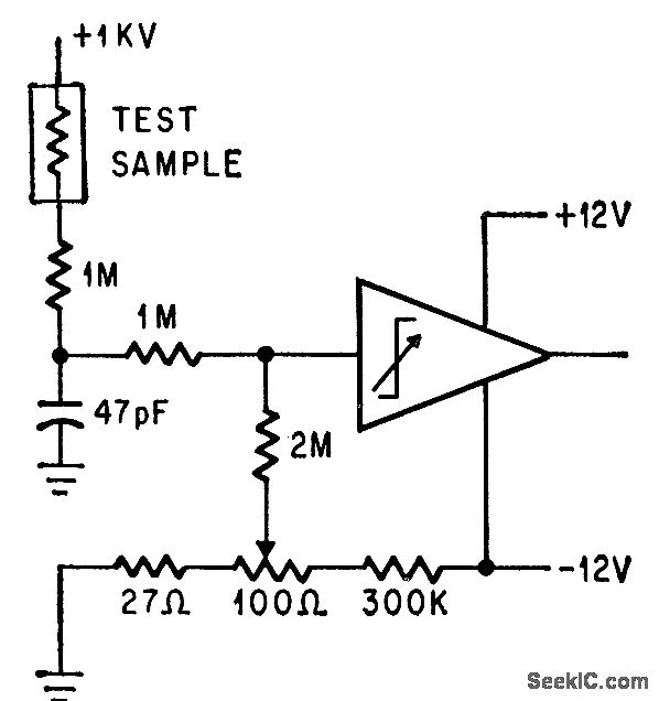 Operational trigger trips when resistance of sample under test is less than 500,000 meg.-P. Lefferts, Operational Trigger For Precise Control, Electronics, 37:28, p 50-55.