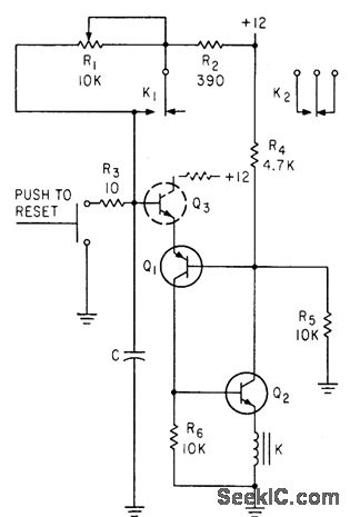 Interval is determined by C, which can be paralleled capacitors to in. crease range.-N. C. Hekimian, PNP-NPN CIRCUITS; New Look at a Familiar Connection, Electronics, 35:47, p 42-46.