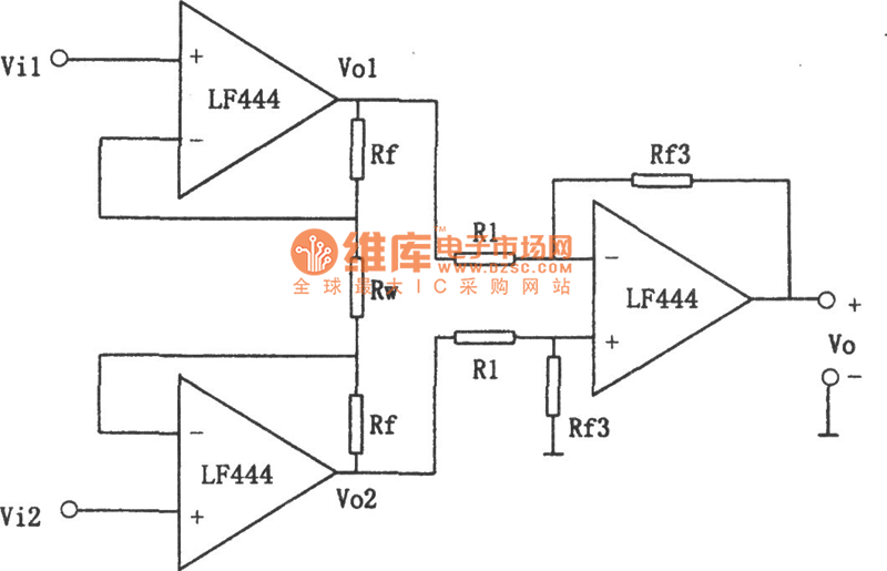 The circuit is not only characteristic of high input resistance, but also overcomes inconveniences caused by Vo which is floating output .Typical values of main parameters of LF444 :