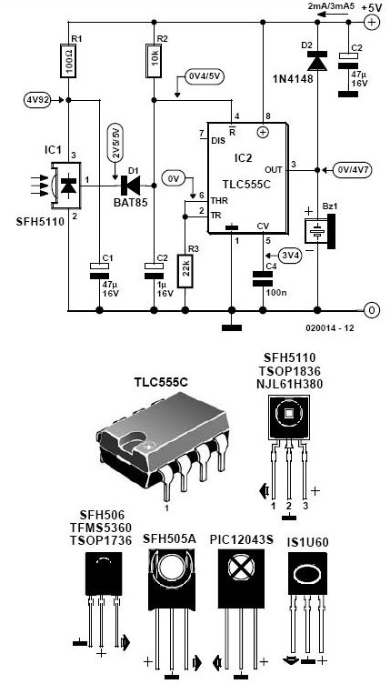 Infrared Alarm Barrier Receiver Circuit Schematic