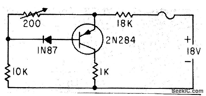 Series collector resistor lowers dissipation of fuse circuit during normal line voltages, and serves also as voltage regulator for transistors being protected (represented by 1K load).-K. Redmond, Low-Cost Transistor Overload Safety Circuit, Electronics, 33:42, p 102.