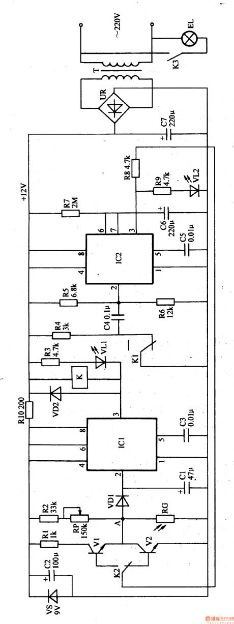 The 220v voltage will provide IC2 with working voltage after the reduction, rectification and filtration. The other circuit will provide the light-operated circuit with Vc voltage.