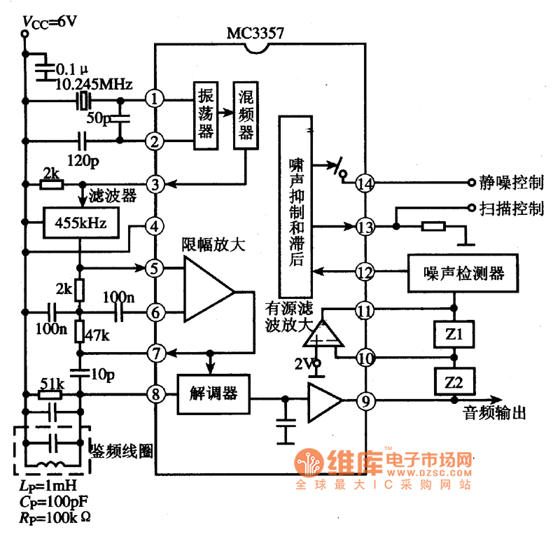 http://www.seekic.com/circuit_diagram/Control_Circuit/MC3357_small_power_frequency_modulation_intermediate_frequency_integrated_circuit.html