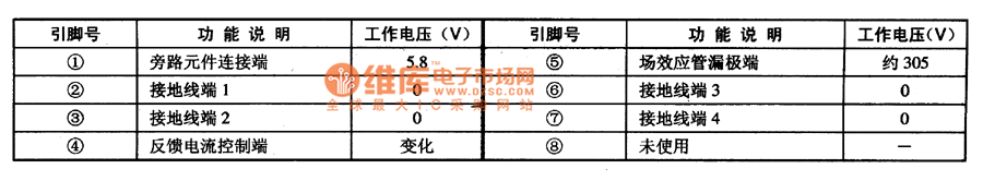 The MIP0254SP integrated circuit is in the 8-pin DIP package, the internal circuit block diagram is as shown in the figure, the pin functions and data is as shown in the table.