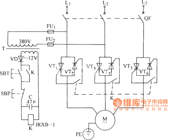 Published:2014/2/7 19:43:00 Author:lynne | Keyword: Ordinary three-phase control thyristor circuit diagram, | From:SeekIC