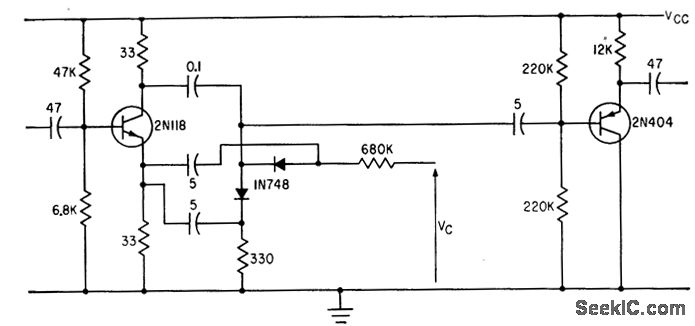Frequency range of more than two decades can be obtained from voltage-controlled oscillator when linear biasing is used for phase-shift circuit.-R. A. Greiner and S. K. Morgan, Voltage Controlled Wide-Range Oscillator, Electronics, 34:51, p 31-35.