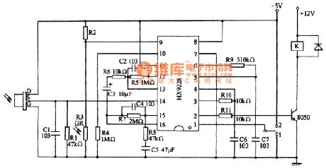 When infrared sensor processing special chip HX9228receives infrared sensor's output signal, after completing linear amplification, two-way amplitude discrimination, signal processing, delay timing, blockade timing, its pin 2 outputs high-level make triode 8050 conduction, drive relay K suck closes. Then the relay contacts control corresponding controlled object. In the diagram, R2 adjustes choiceaccording to environmental brightness, when thepin 9 is low potential, chip can't trigger.
