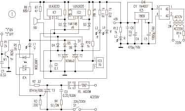 The IC1 and IC2 are the Hall integrated circuit ULN3020, in the normal operation, their output port pins always have the low level voltage, D2 and D3 close, the SCR T1 is in the shutdown state, LED L4 does not light, the positive power supply form a loop through the R6, L1, IC4, R5, VT and the ground, if the base port of the control switch transistor VT has the high level voltage, it is in the conduction-status to open the zero-crossing trigger IC4 and also to trigger the two-way silicon T3, the load RL gets the power to work, their current will generate an alternating magnetic field in the magnetic circuit, if the peak value of the magnetic field intensity does not reach the two hall components' opening magnetic field strength, IC1 and IC2 will be maintained the original state.