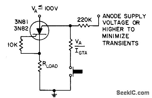 Eliminates contact t bounce when switch is closed to trigger scs, with both switch and load grounded.- Transistor Manual, Seventh Edition, General Electric Co., 1964, p 433.