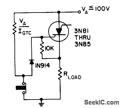 Eliminates contact bounce when both switch and load are grounded and opening of switch triggers scs. - Transistor Manual, Seventh Edition, General Electric Co., 1964, p 433.