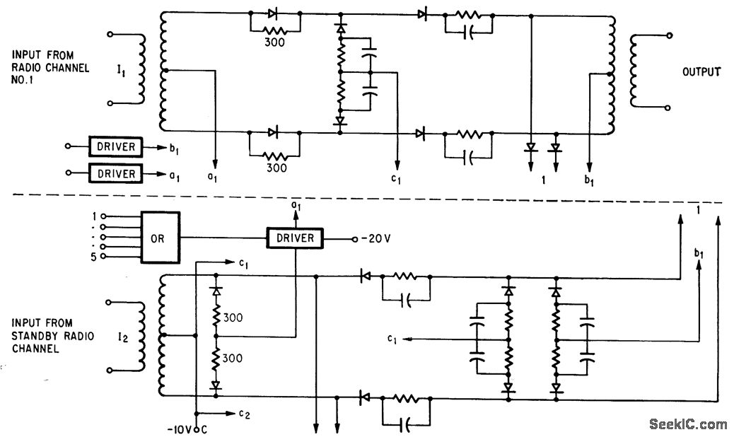 Used in high-speed data transmission system having 15-gc bandwidth. Use of Kita diodes gives transition lime of 20 nsec for break and 40 nsec for restoration, pg compared to 1 millisec for reed relays.-I. Someya, Bidding For World Leadership in Solid State Micro. wave Gear, Electronics, 38:25, p 99-105.