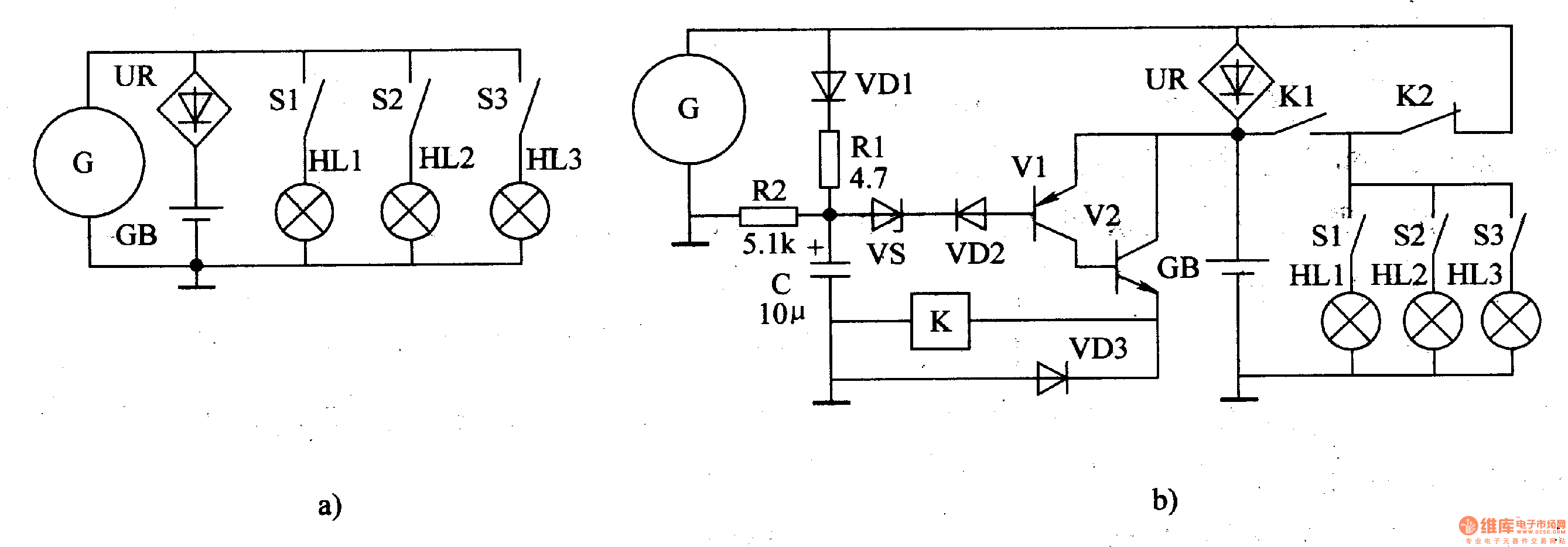 Drivers may feel very harsh at the moment the instrument-panel lamp is open at night.This example describes the instrument-panel lamp dimmer,which can reduce the visual impact of the drives,thereby it can enhance the safety of night driving. The principle of circuitThe instrument-panel lamp dimmer circuit is formed by the voltage regulator circuit,reset circuit,square-wave oscillator,protection circuit and electronic switching circuit,which is shown in figure 7-35. Regulator circuit consists of resistorsR1 and the voltage regulator diode VS. Reset circuit consists of capacitor C1, resistors R3, R4.