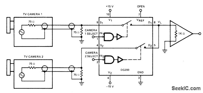 When used for switching TV cameras.DG200 CMOS analog switch provides 45-dB isolation at 10 MHz between on and off cameras,Insertion loss of switches 0.5 dB, For greater isolation、use additional analog switch in each camera line.-Analog Switches and Their Applications ” Siliconix. Santa Clara,CA,1976.p 7-70.