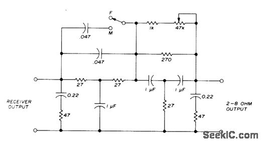 Circuit developed by NASA engineers to improve intelligibility of voice communication during Apollo moon shots passes only the three portions of the speech spectrum required for clear speech:300-400 Hz and 2500-3000 Hz for both sexes and 900-1700Hz for males or t 100-1900 Hz for females. Pot ad lusts null to about 600 Hz. Circuit improves readabilhy of weak DX voice signals in noise.-J. Fisk, Circuits and Techniques, Ham Radio, June 1976, p 48-52.