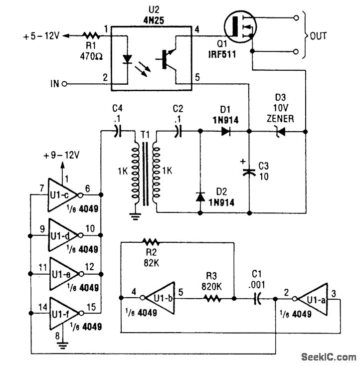 http://www.seekic.com/circuit_diagram/Control_Circuit/Switch_Control/OSCILLATOR_TRIGGERED_SWITCH.html