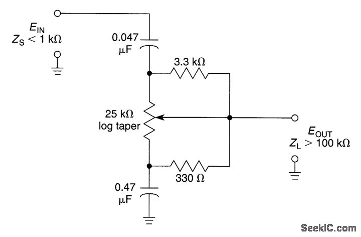 This tone control has an insertion loss of 20 dB at flat setting and is effective above 1 kHz,It little effect below about 1 kHz.
