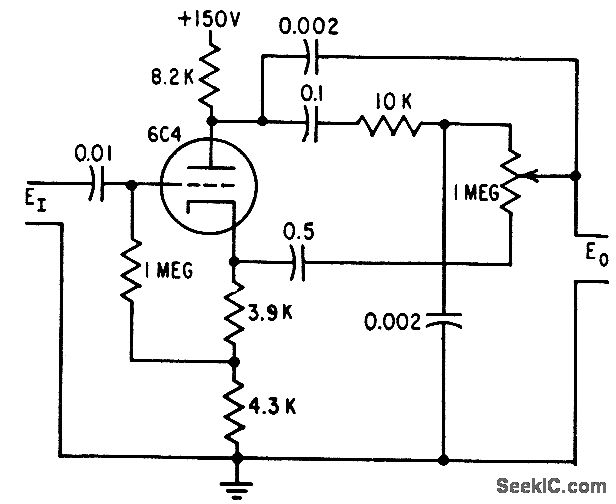 Elimination of transformer resonance effects at higher frequencies permits phase shifter to handle wider band of frequencies, from 500 to 2,000 cps for component values shown.-W. G. Shepard, Phase Shifter Range Exceeds 180°, Electronics, 31:19, p 96-100.
