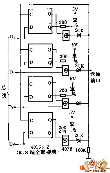 The circuit has functions of judging the change of the data, locating and outputting strobe pulses. Usually, the output of each OR gate is 0 , and the strobe output is also 0 . If either terminal changes its stage, the corresponding OR gate will output 1 immediately, the jumping is fed back to the clock terminal of the 4 D triggers, and the general state is located. Then, all the 4 OR gates output low LEV.