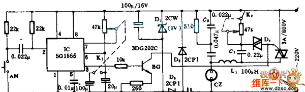 To assure the quality of the photogragh, this device can satisfy the shutterbug to control the time of exposure. It has the advantages of high accuracy in time controlling, having universal function such as time exposure, light-dimmer, pressure regulating and so on. Enlarging bulb or iron, electric blanket and lamp. The electric applianceses, such as electric fan and dynamo. etc. can be connected to the output socket CZ, and the output is controlled by the silicon capacity. For example, the pure resistive load can provide the power with 600 W; capacitive or inductive burden make the output be smaller than 300w.