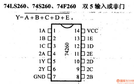 The 74LS260, 74S260 dual 5-input NOR gates are as shown in the figure:
