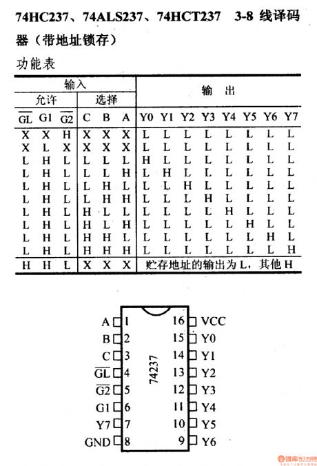 The 74 series digital circuit 74HC237, 74ALS237 3-8 line decoders (with address latch)