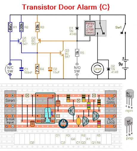 Published:2013/2/2 20:28:00 Author:muriel | Keyword: Transistor , Door Alarm Circuit