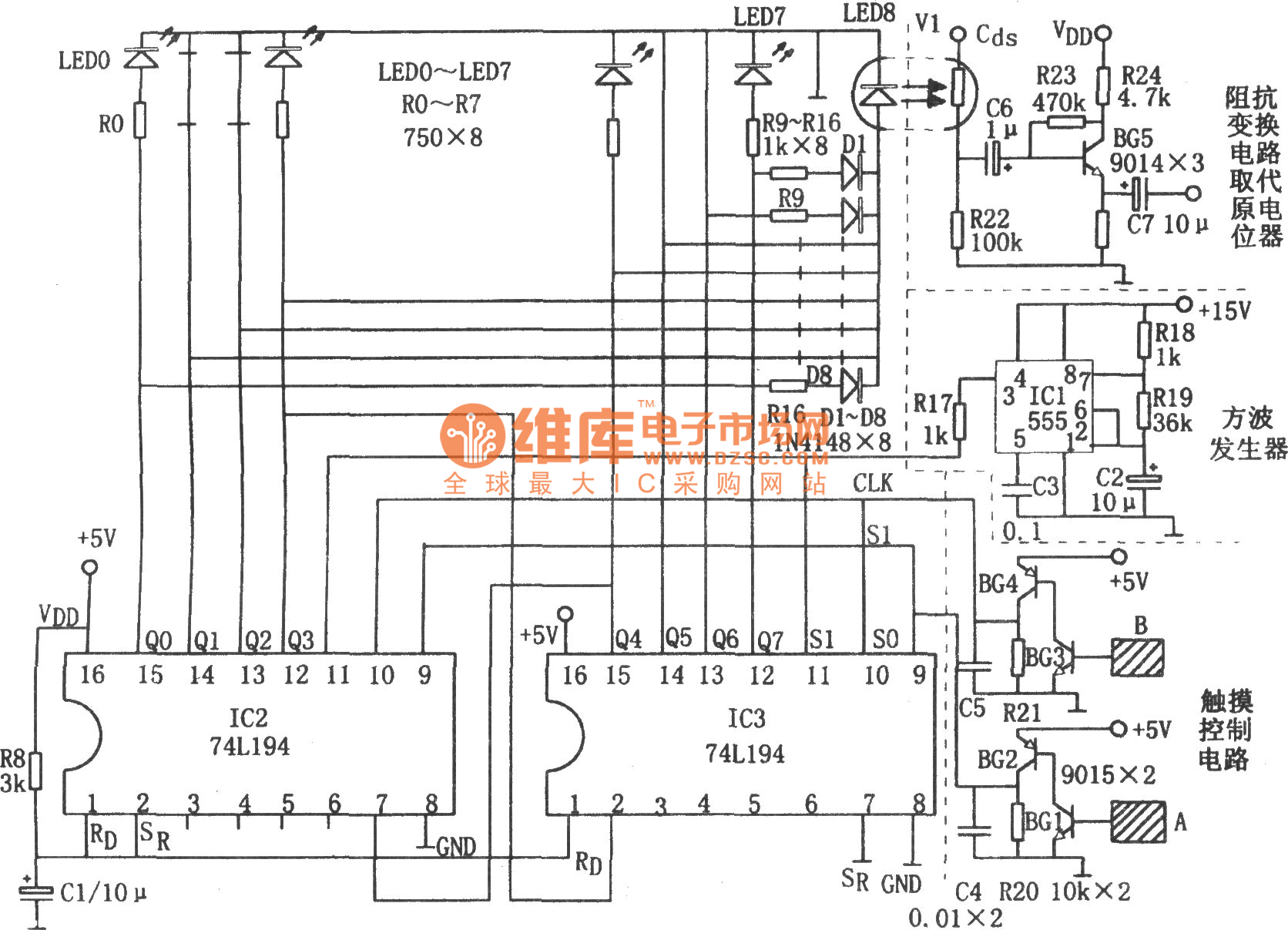 http://www.seekic.com/circuit_diagram/Control_Circuit/level_8_touch_volume_controller_of_74L194_circuit.html