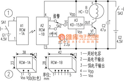 The multi-function alarm circuit composed of the wireless transceiver is as shown: