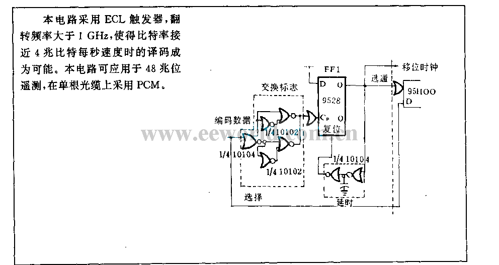 This circuit use ECL trigger. Its toggle frequency is greater than 1GHz. And the trigger make decoding possible when bit rate close to 4 Mbits per second. This circuit can used in 48 Mbits telemetry and adopts PCM at simple root cable.