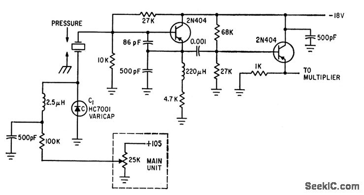 Frequency shift is proportional to pressure on quartz crystal-D. E. Newell, C. H. Horn, and M. L. Rubin, Measuring Eyeball Pressure with a Crystal Oscillator, Electronics, 34:36, p 64-65.