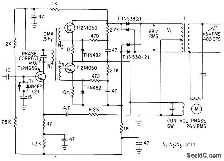 Unconventional output stage eliminates need for center tap on servomotor for controlled winding, gives 55% overall efficiency.-J. A. Walston and J. E. Setliff, Designing Servo Amplifiers for High Efficiency, Electronics, 36;6, p 62-63.