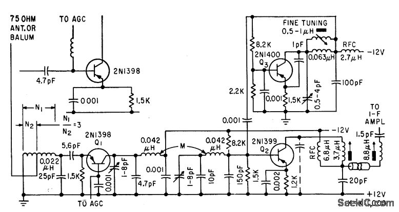 Diffused-base mesa transistors permit design of tv tuners with noise performance equal to that of tube tuners. Article gives complete design procedure for r-f amplifier, mixer, and oscillator stages.-H. F. Cooke, Designing Tv Tuners with Mesa Transistors, Electronics, 33:15, p 64-69.