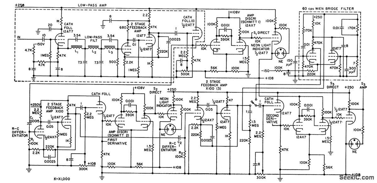 Uses Schmitt triggers to produce output of one value when input signal exceeds preset reference, and produces output of one other value when input signal is less than reference value.-C. J. Zaander, Computer Analyzes Brain Waveforms, Electronics, 31:29, p 68-72.