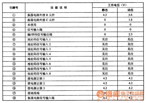 The ED-9515 IC uses 18-pin dual inline package and its pin's function and data is listed in table 1.