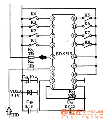 The coding circuit typical application circuit composed of ED-9515 IC is shown in picture 1.