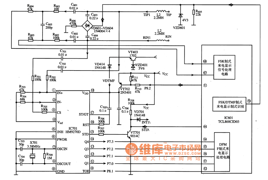 The HM927OD is a DTMF double-tone multi-frequency caller ID decoding IC produced by the Hualong company in Chinese Taiwan area. It is widely used in many kinds of caller ID telephones such as the TCL series.