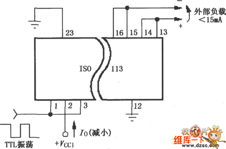 The Reducing Power Consumption ISO113 Circuit is shown in the picture shown below. For single-channel or multi-channel synchronization application it requires the Vcc1's current to be less than +/-15mA. It can use a oscillation circuit to generator TTL voltage level to drive the synchronization input port(3 foot) and enable port (1 foot) to reduce the power consumption.