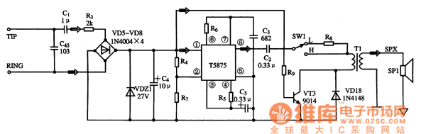 The ringing circuit typical application circuit composed of the T5875 IC is shown in picture 1.