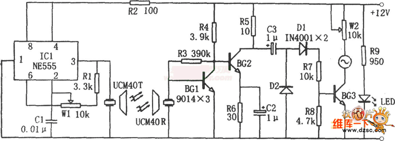 Because the ultrasonic wave features that it would not be influenced by the concentration and conductivity of the tested liquid, this circuit would have better and higher accuracy than normal contacted liquid level displaying circuit.
