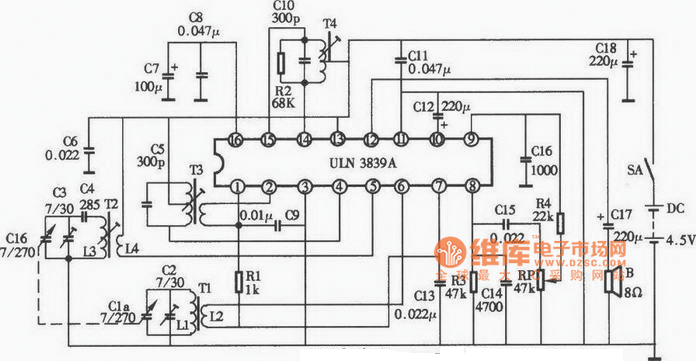 http://www.seekic.com/circuit_diagram/Electrical_Equipment_Circuit/Radio_Circuit/Radio_circuit_using_chip_UIaN3839A.html