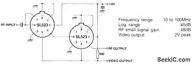 The SL523 shown In this figure is similar to the SL521 shown in Fig.3-2,except that the SL523 is a dual amplifier and provides an approximate 24~dB gain. Typical value for the supply decoupling capacitor is 3 nF.