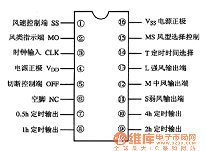 TC901 is a microcomputer integrated circuit of fan single chip produced by Toshiba, which is widely used in speed adjusting and power adjusting of all kinds of fans and household appliances.1.function featuresTC901 includes order decoding circuits, clock circuits, indicator drive circuitS, wind speed adjusting circuits and so on.2.pin functionsTC901 is in 16-pin dual in-line package, whose pin functions are shown in Figure 1.Figure 1. The pin functions of TC901