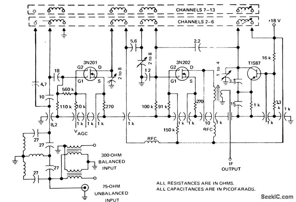 TV VHF tuner using dual-gate MOSFETs (courtesy Texas Instruments Incorpo rated).