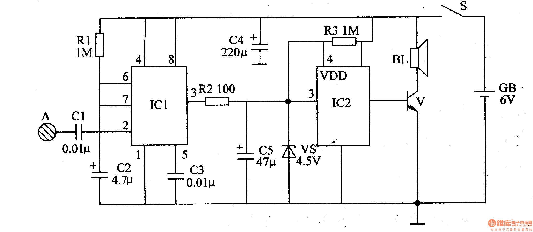 http://www.seekic.com/circuit_diagram/Electrical_Equipment_Circuit/Video_Circuit/Bell_of_the_Bicycle_the_1st.html