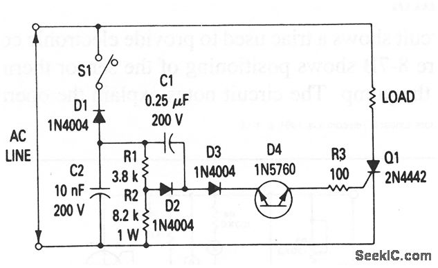 This circuit is primarily for nonsensitive-gate SCRs, such as the 2N4442 (or an MCR218-8), and loads of 8.0 A or less.